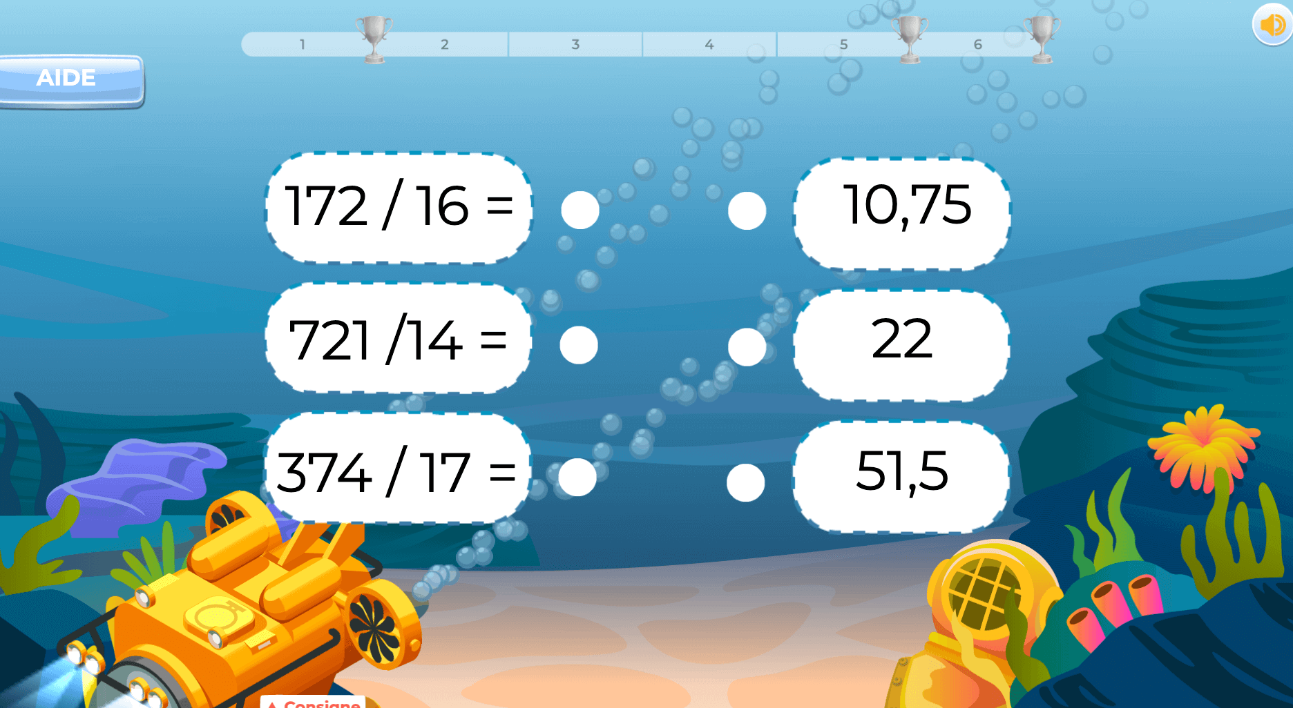 Apprendre la division est une étape essentielle pour comprendre le sens du partage et du calcul réfléchi. Votre enfant s’exerce grâce à des activités interactives en ligne, corrigées automatiquement, et à des fiches PDF prêtes à imprimer pour s’entraîner sur papier. Qu’il s’agisse de divisions simples, de calculs avec reste ou de divisions posées, nos exercices s’adaptent à tous les niveaux. Grâce à une approche progressive et motivante, votre enfant développe sa logique, sa rigueur et sa confiance en mathématiques.